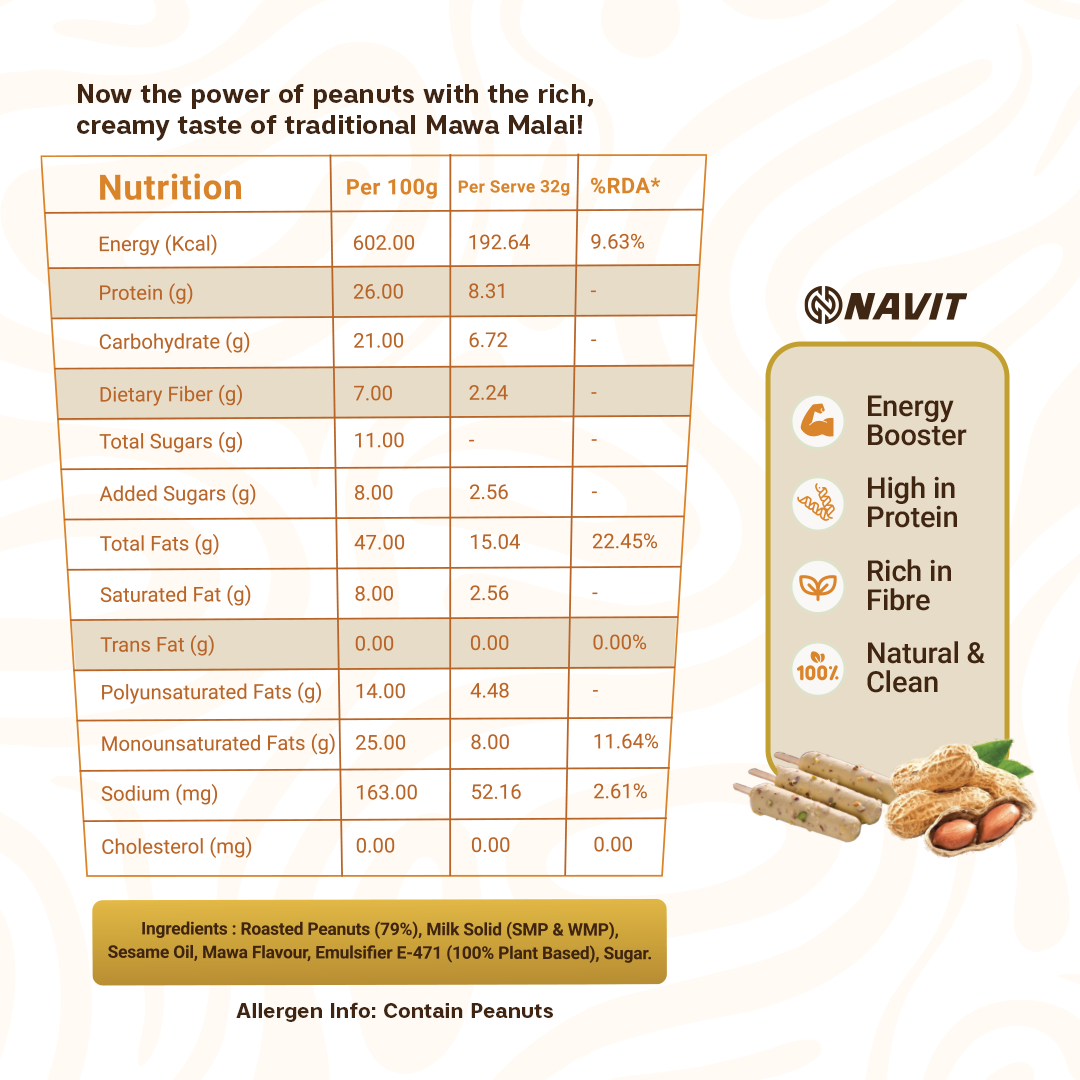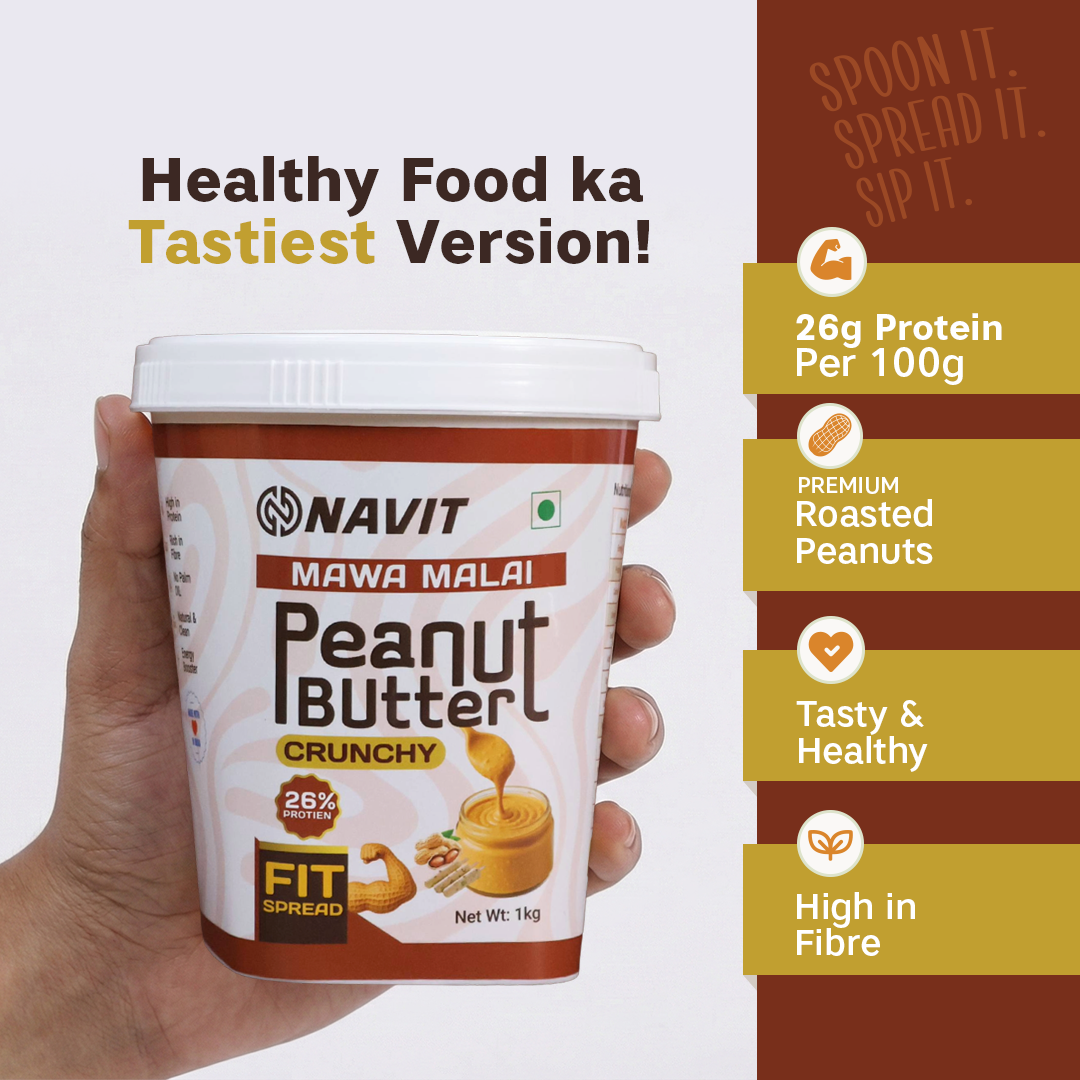 Navit Mawa Malai Peanut Butter combines traditional Indian-inspired flavour with modern clean nutrition. Made from premium roasted peanuts, it offers a creamy, indulgent taste while staying protein-rich and clean.